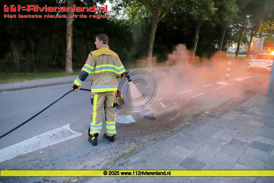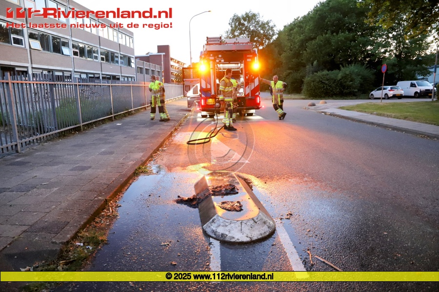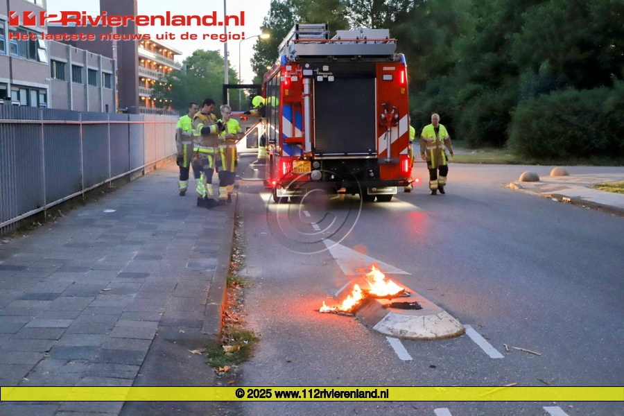 Tiel - Verkeerspaal in brand gezet op een vluchtheuvel