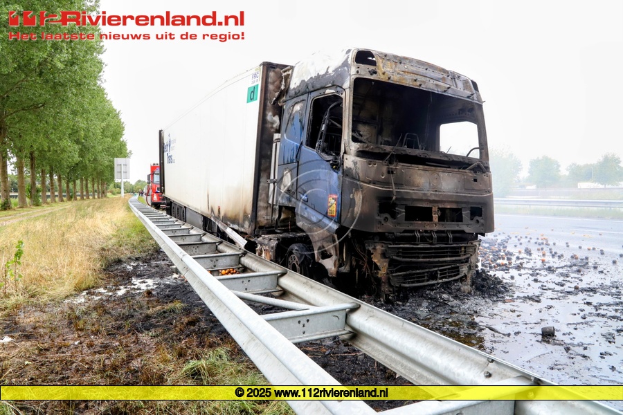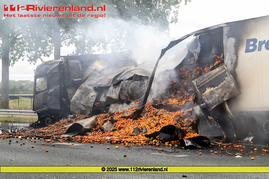 Echteld - Vrachtwagen met fruit brand uit