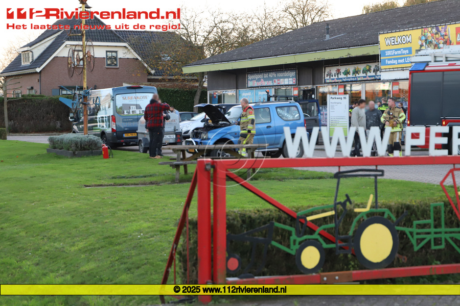 Beesd - Autobrand op parkeerterrein winkel