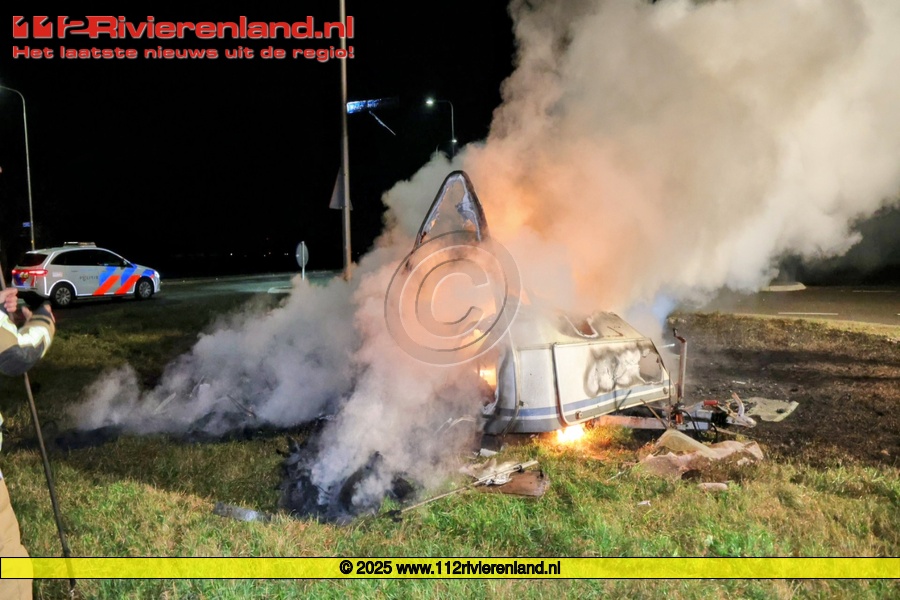 Herwijnen - Caravan in brand aan de Graaf Reinaldweg