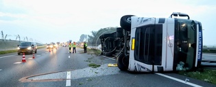 Geldermalsen - Vrachtwagen met zand en grind op z'n kant A15