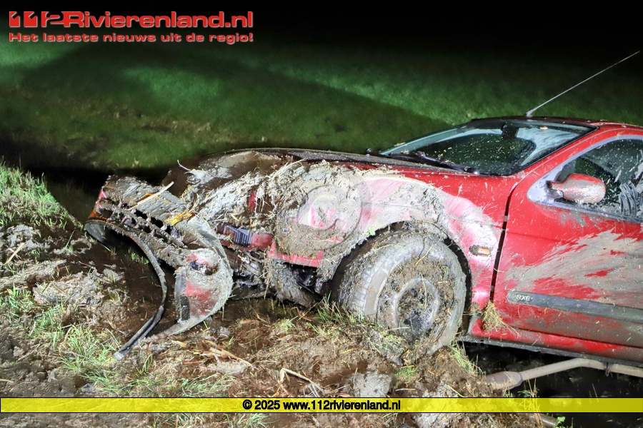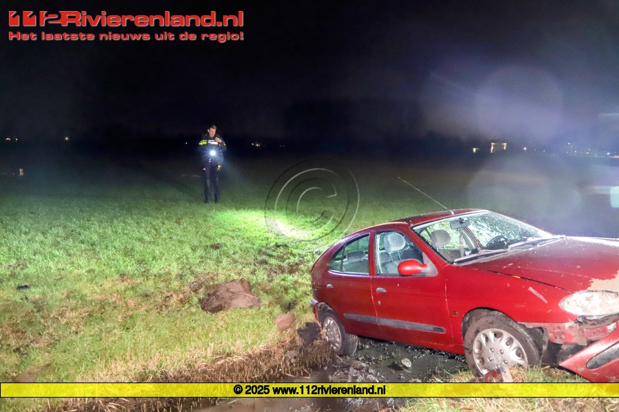 Bij aankomst bleek er een voertuig dwars over de sloot te staan. De personenauto was eerst al de sloot over geraakt en vervolgens via de kant weer teruggeschoten. De twee inzittenden probeerden na het uitstappen nog vuurwerk uit de kofferbak te halen en te verstoppen in het weiland.