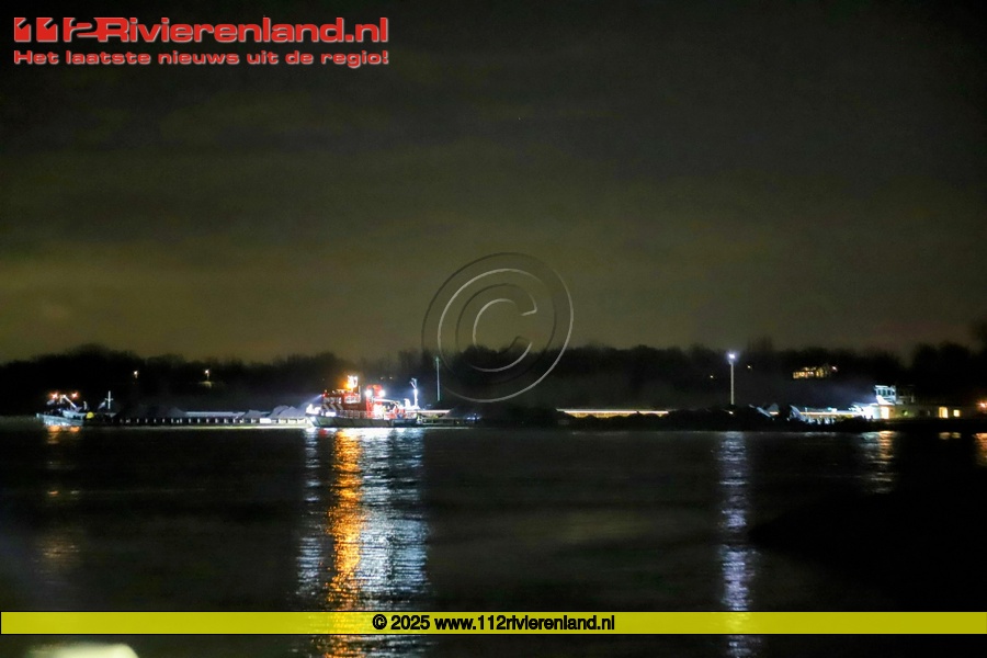 Tiel - Schip loopt vast op de Waal