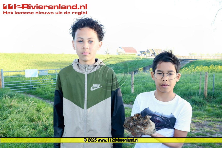 Zaterdag aan het einde van de middag vonden twee spelende kinderen Uriah Taihuttu en Manasse Sariwating aan een zandstrandje aan de Ophemertsedijk iets bijzonders.