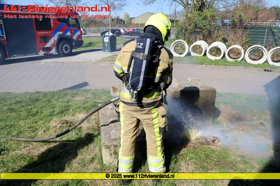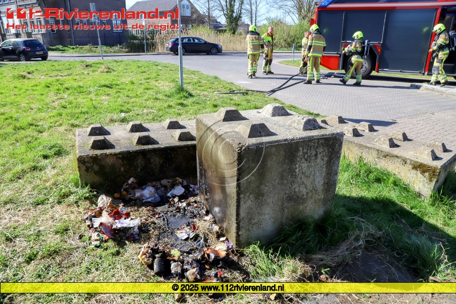 Bij aankomst bleek er afval in de brand te zijn gezet tegen een aantal betonblokken. Het brandje werd snel geblust. Op 12 maart stond er nagenoeg op dezelfde plaats een scooter in de brand.