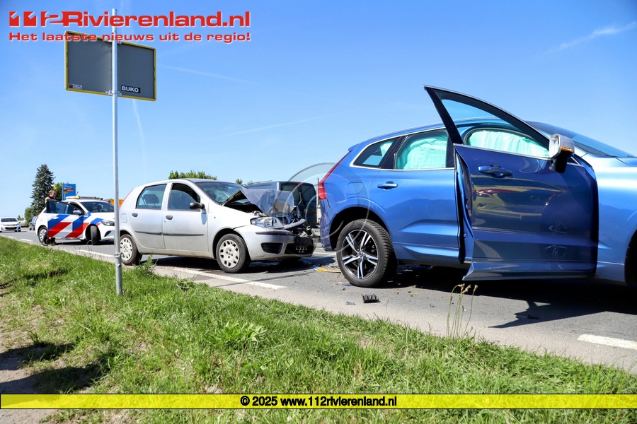 Hierbij botste een auto achterop zijn voorganger. De bestuurder van de achterste auto is met de ambulance overgebracht naar het ziekenhuis.