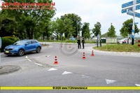 Op de rotonde kwamen een personenauto en een fietser met elkaar in botsing. De man reed op een elektrische vouwfiets en kwam op het wegdek terecht. Hij bloedde behoorlijk en is met de ambulance overgebracht naar het ziekenhuis.