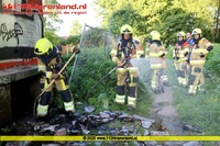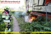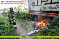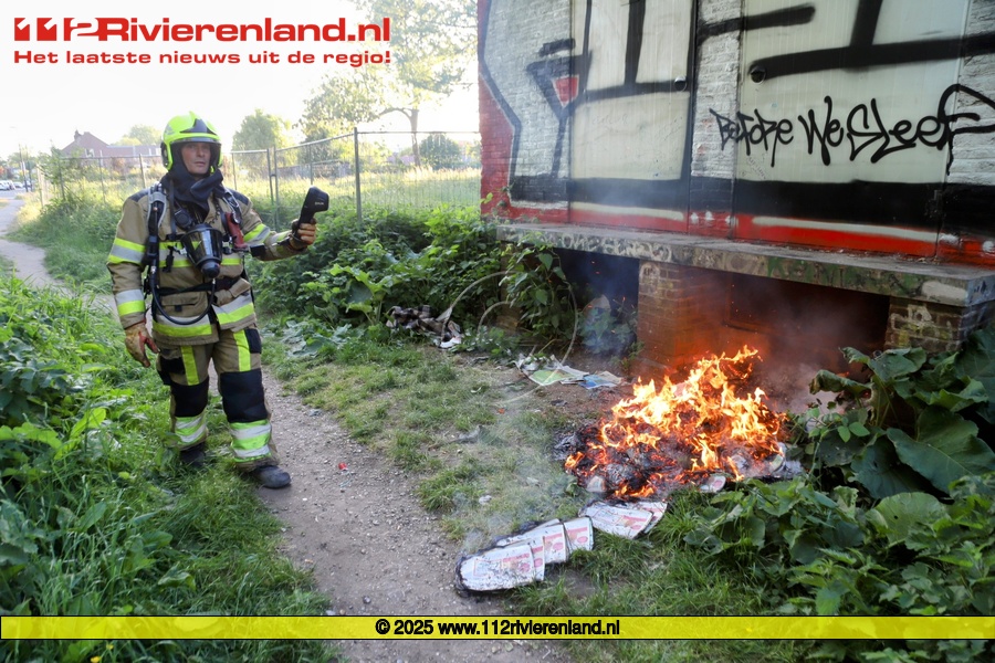 Bij aankomst bleek er naast een elektriciteitshuis een stapel met kranten in de brand te zijn gezet.