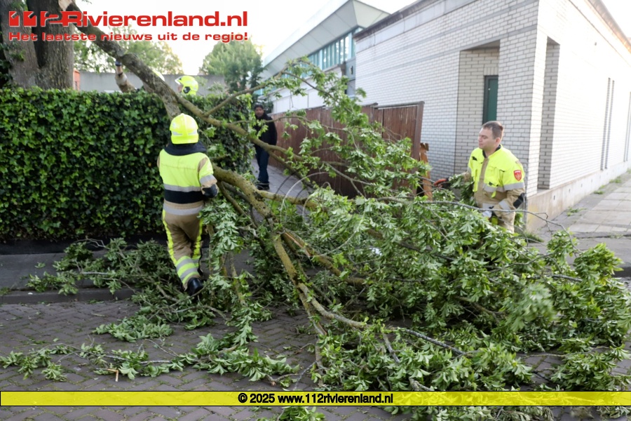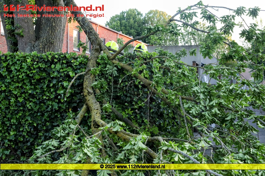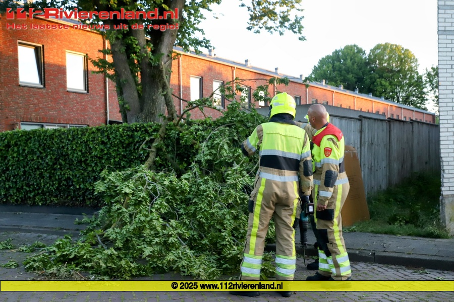 Bij aankomst bleek er een grote tak over de weg te liggen op de Jelis van Riemsdijklaan. De tak was afgebroken uit een grote boom in de achtertuin van een woning.