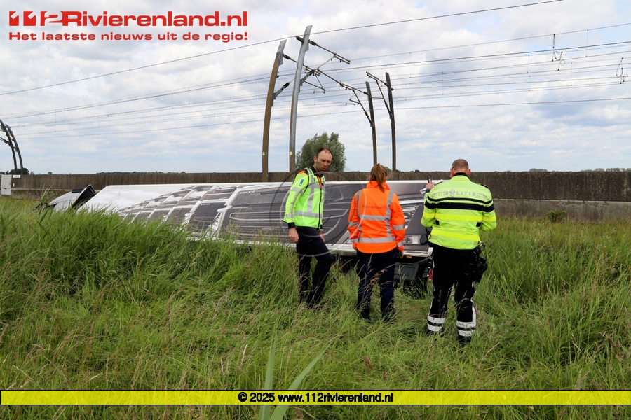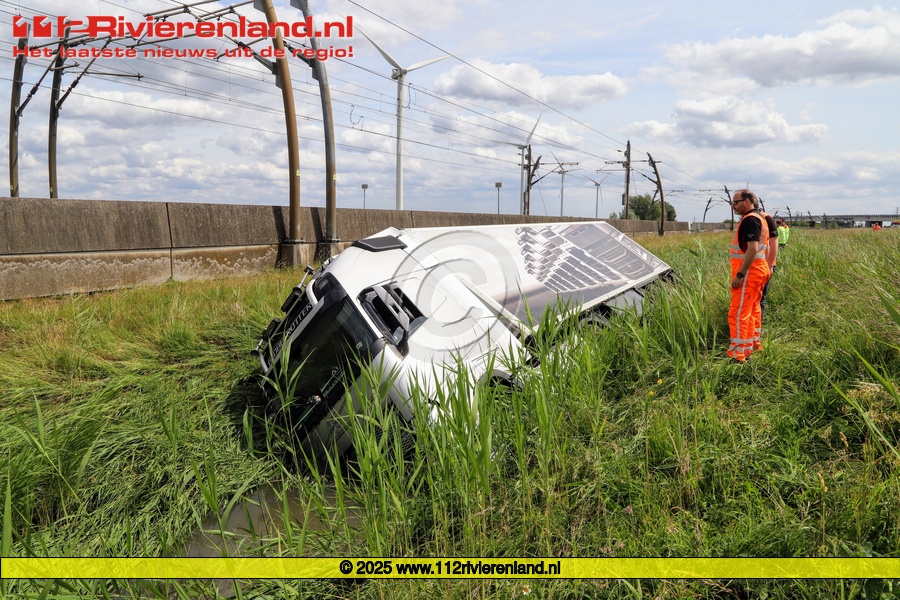 Dinsdag om 11.40 uur werd er een voertuig te water gemeld langs de A15 richting Rotterdam ter hoogte van IJzendoorn. Hierbij bleek een vrachtwagen geladen met verf op de zijkant in de sloot te liggen.