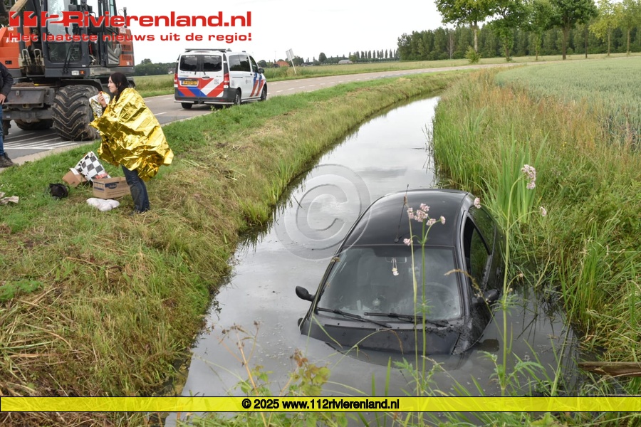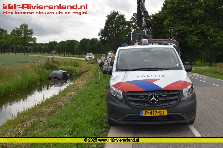 Neerijnen - Auto te water aan de Kaalakkerstraat