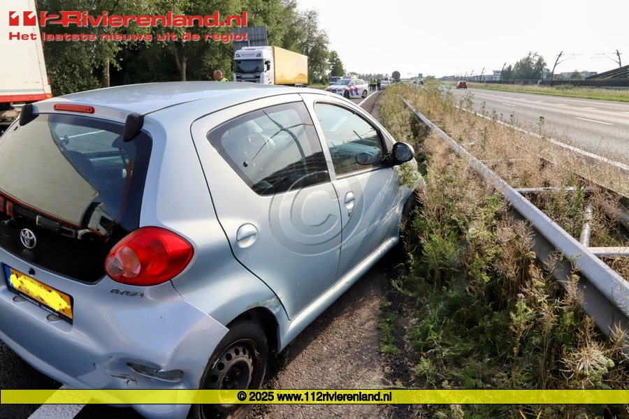 Donderdag om 18.45 werd er een ongeval gemeld op de A15 richting Nijmegen ter hoogte van Geldermalsen. Tussen de afslag Geldermalsen en Ochten raakte een bestuurder de macht over het stuur kwijt.