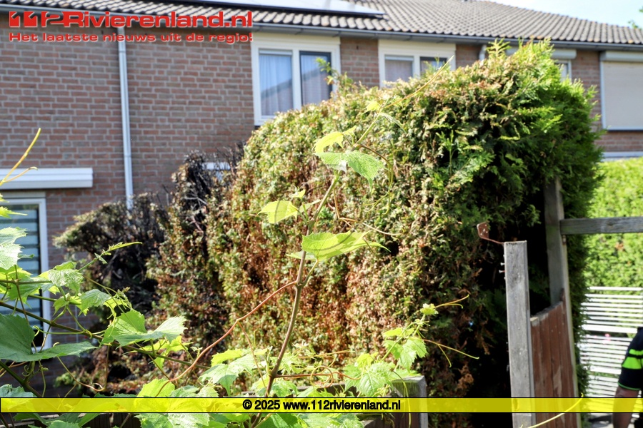 Bij aankomst bleek er een coniferenhaag in brand te staan achter een woning. Deze brandde voor een groot gedeelte af. Het vuur was snel onder controle door de brandweer.
