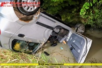 Vrijdag om 21.40 uur werd er een voertuig te water gemeld aan de Cuneraweg. Het voertuig werd aangetroffen op een smal pad langs de Linge op de kop in een sloot.