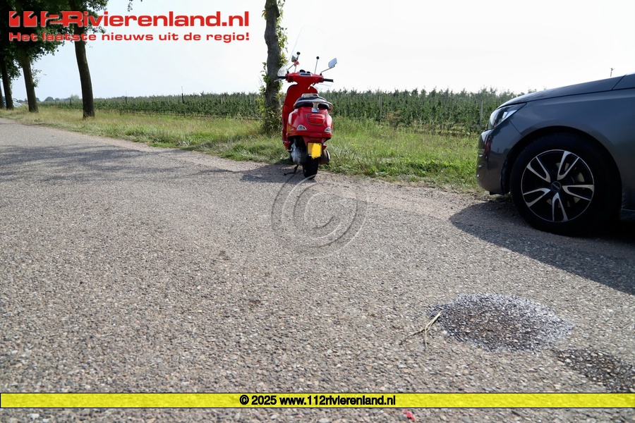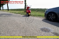 Een scooterrijdster werd geschept door een afslaande personenauto en werd meegesleurd de Hoge Kornseweg in. De vrouw op de scooter kwam ten val en is met de ambulance overgebracht naar het ziekenhuis. Na het ongeval reed de personenauto door.