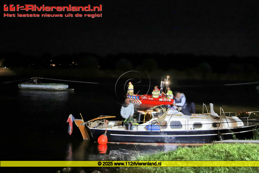 Zondag om 21.55 uur werd er een ongeval op het water gemeld aan de Veerweg. Een plezierjacht was in het donker over de klep van de aangemeerde veerpont gevaren in de Nederrijn en vervolgens in de kabel van de gierpont terechtgekomen.