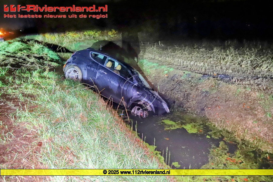 Woensdag om 18.15 uur werd er een auto te water gemeld aan de Weiweg. De bestuurster van een personenauto auto die reed richting Varik, verloor de macht over het stuur na een bocht.