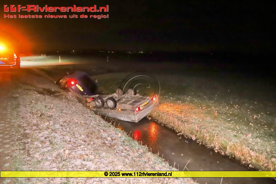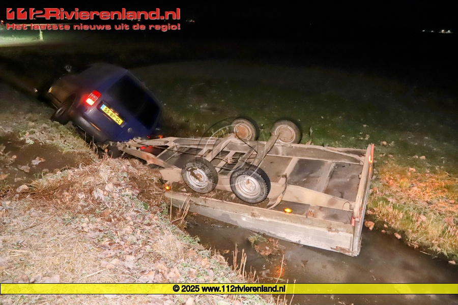 Zoelen - Auto met aanhanger in de sloot