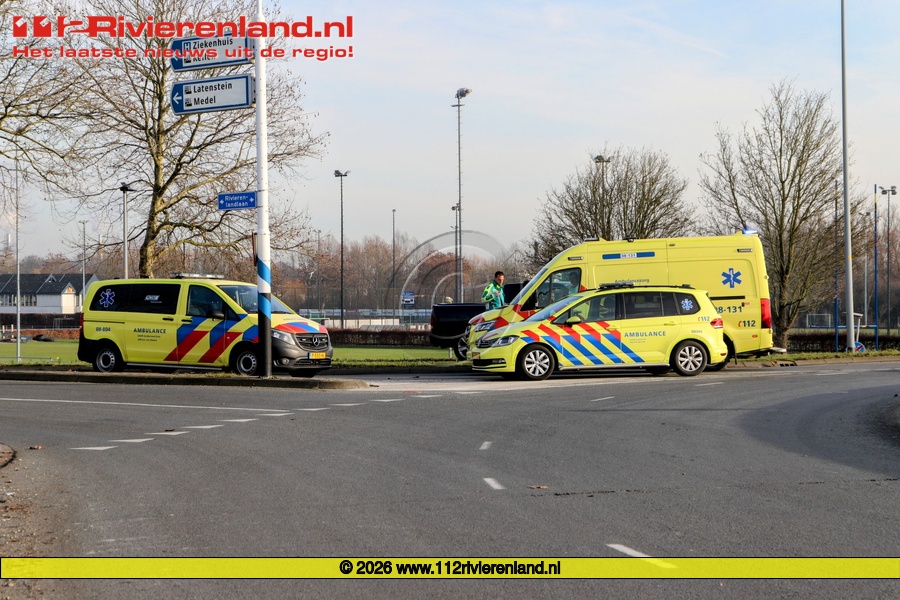 Donderdag om 14.00 uur werd er een ongeval gemeld op de Rivierenlandlaan. Op de Berenkuil bleken twee personenauto's met elkaar hard in botsing te zijn gekomen, waarvan er één tegen de vangrail tot stilstand kwam.