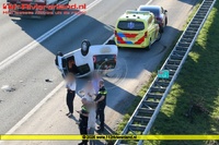 Hierbij kwamen twee personenauto's met elkaar in botsing en één voertuig kwam op de kop terecht. Niemand hoefde mee naar het ziekenhuis.