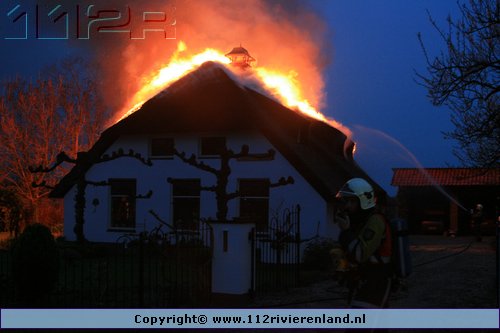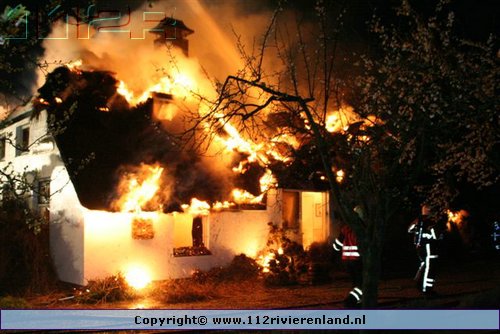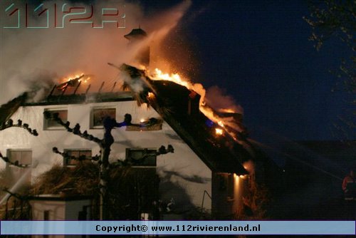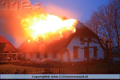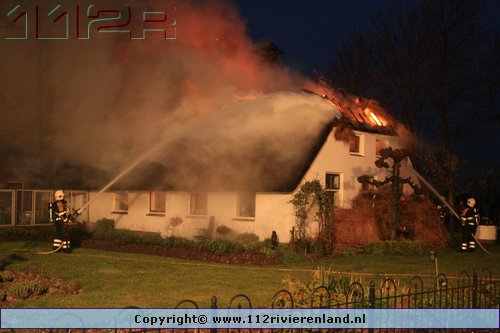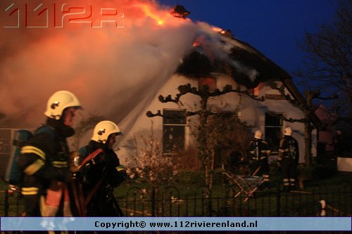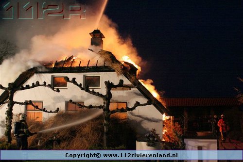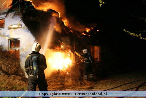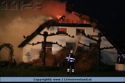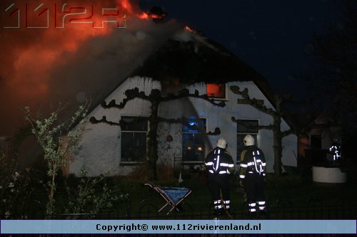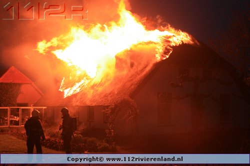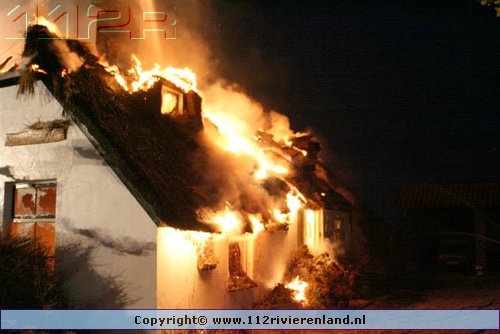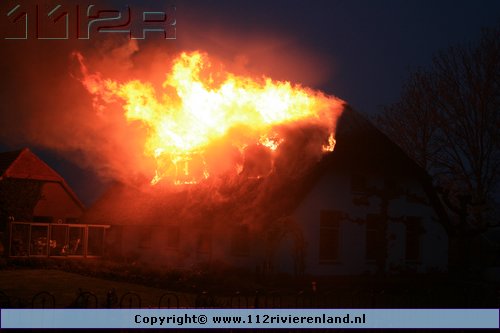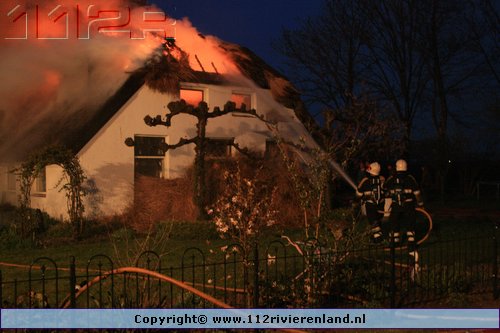 Ommeren - Grote brand in woning met rietenkap