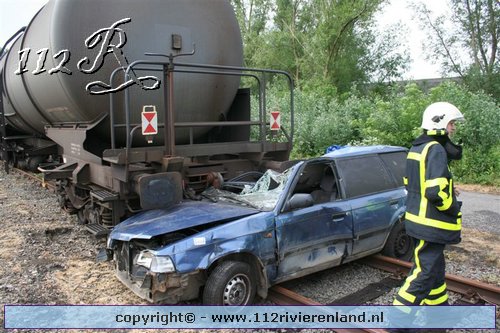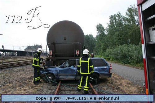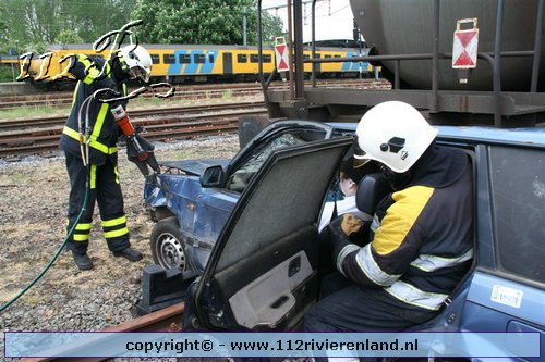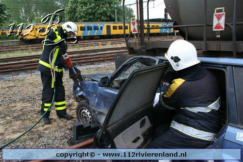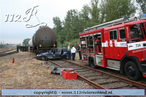 Geldermalsen - Oefening auto onder de trein s`morgens