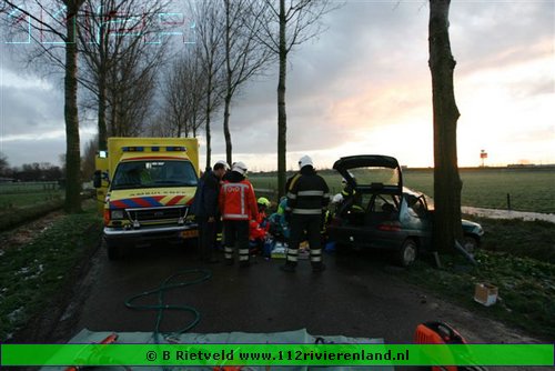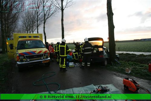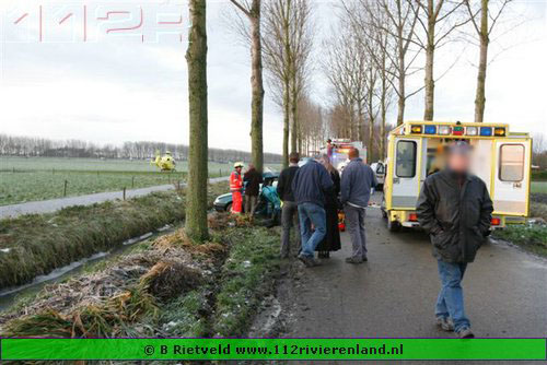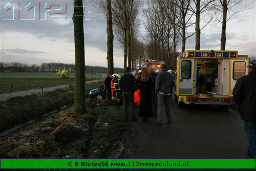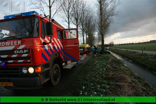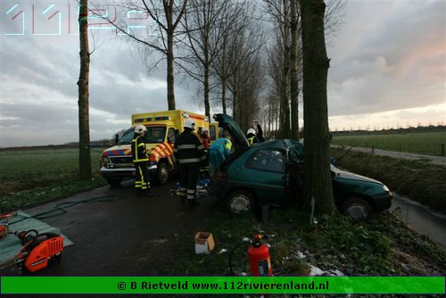 Vuren - Auto tegen de boom Leeuvense Kweldijk