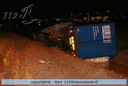 Kesteren - Vrachtwagen in de sloot