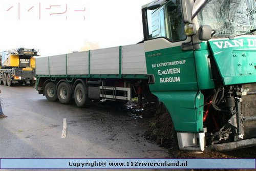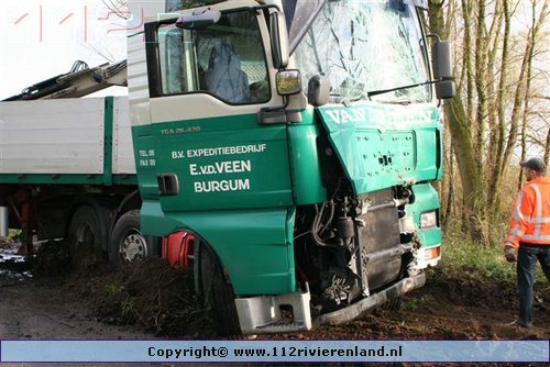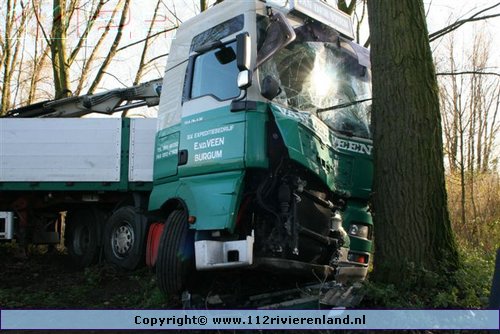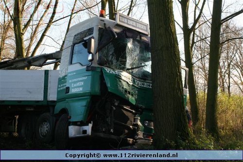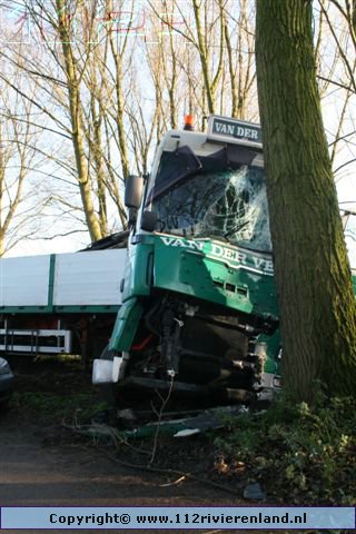 Haaften - Vrachtwagen tegen de boom Crobseweg