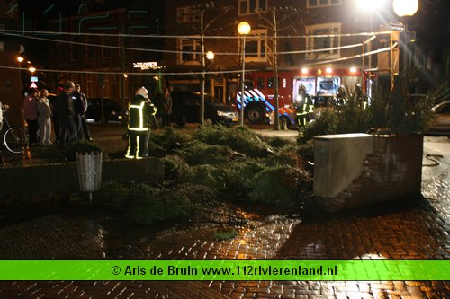 Geldermalsen - Kerstbomen in de brand op het marktplein