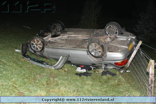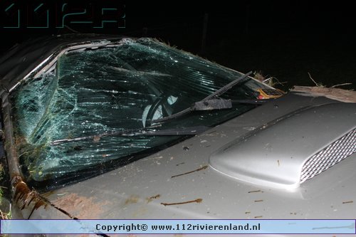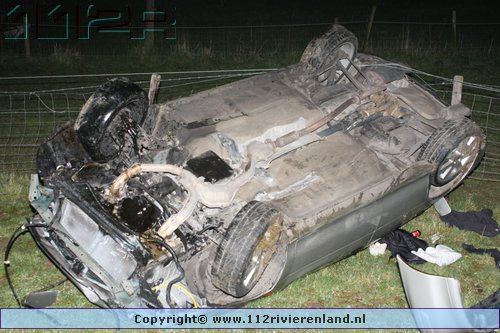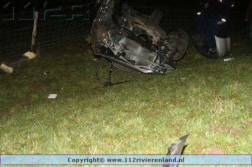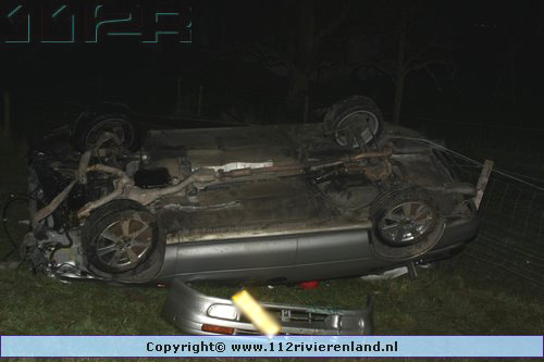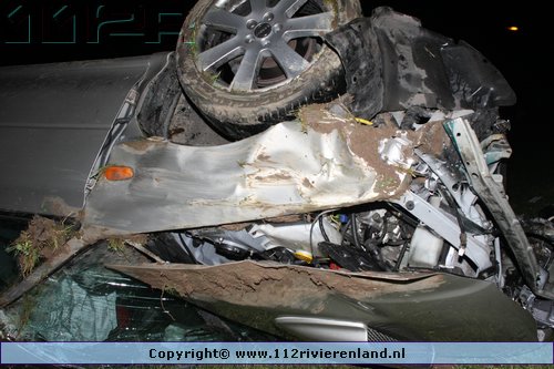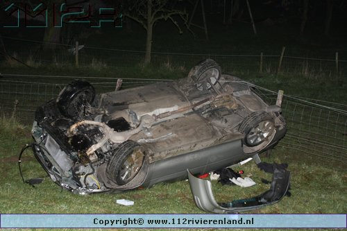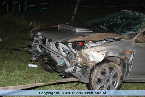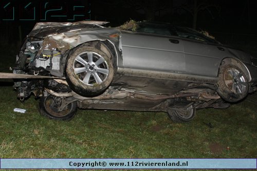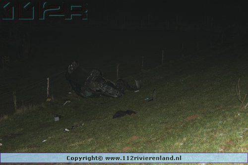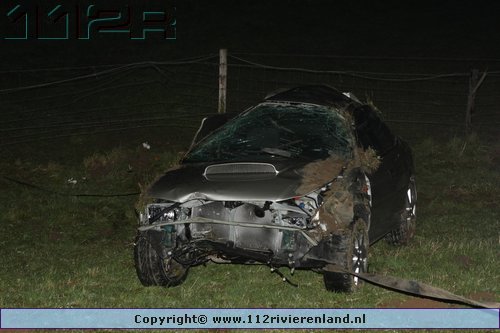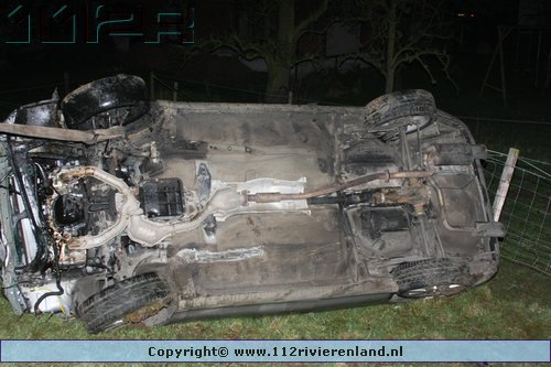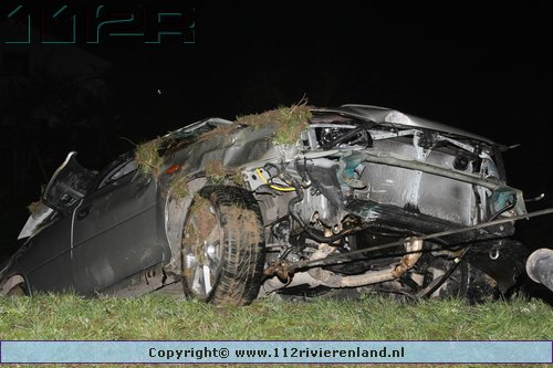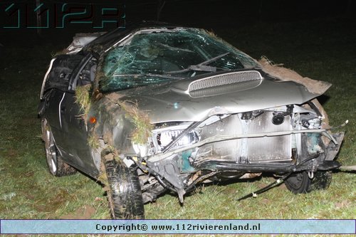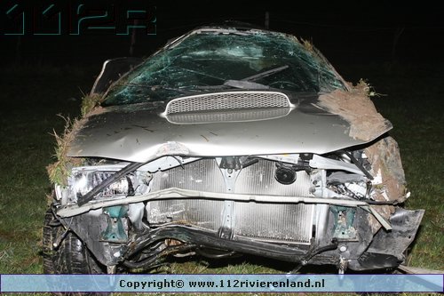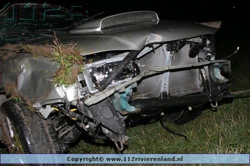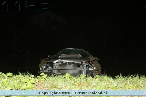 Tiel - Auto komt onderaan de Ophemertsedijk terecht