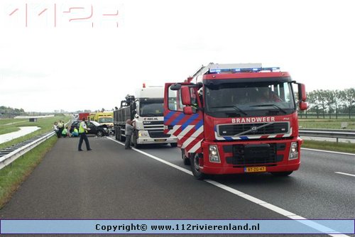 Meteren - Auto rijdt achter op een vrachtwagen A15