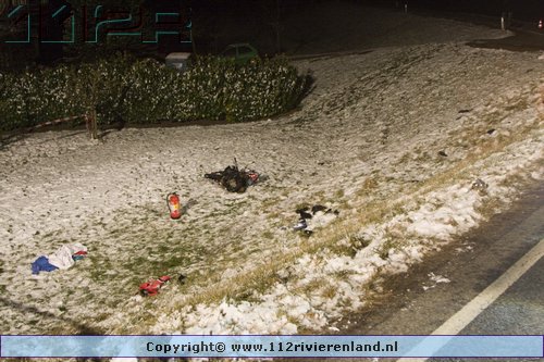 Maurik - Scooter komt onder aan de dijk terecht na aanrijding