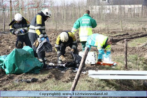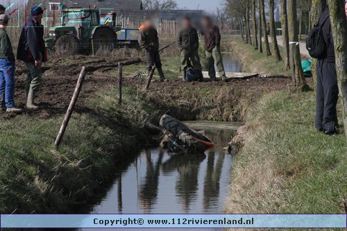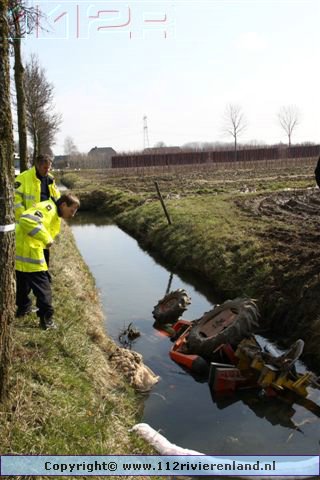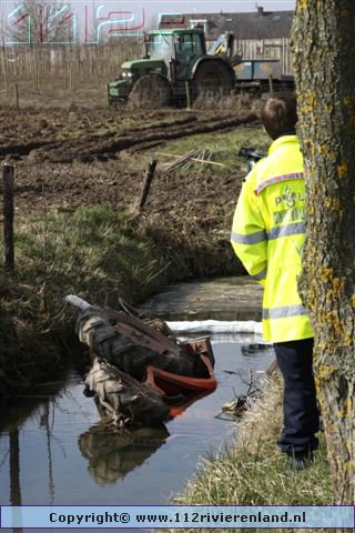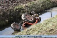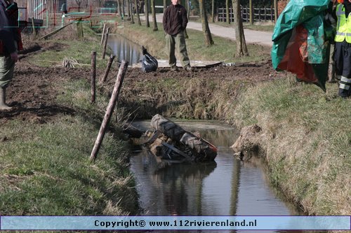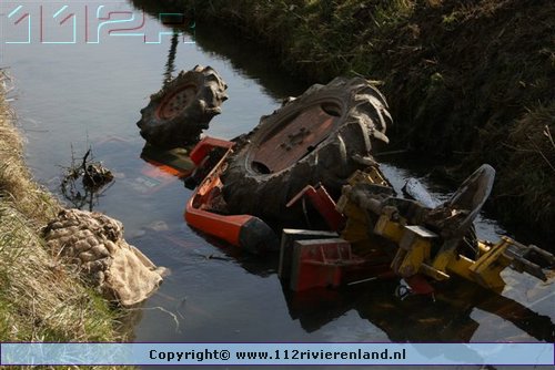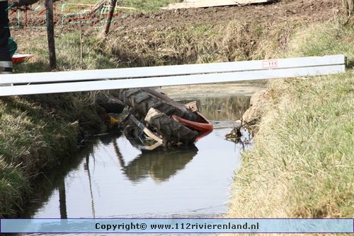 Dodewaard - Tractor op zijn kop in de sloot