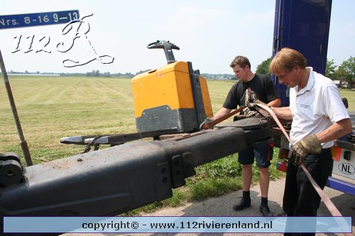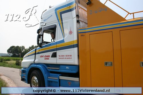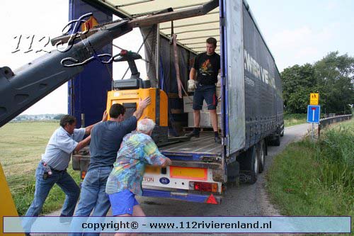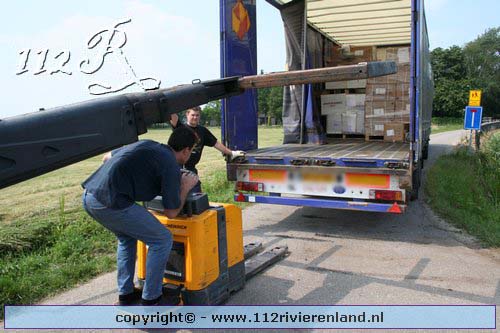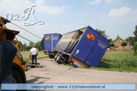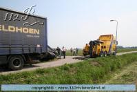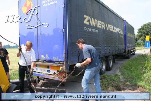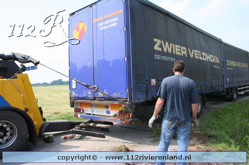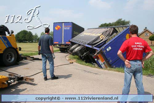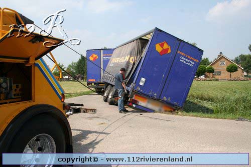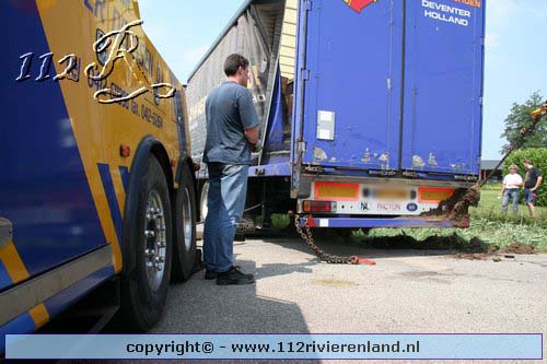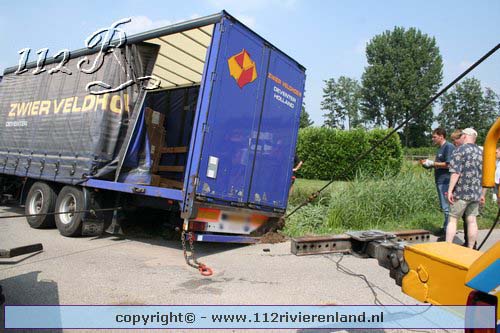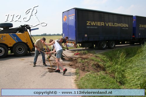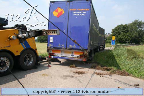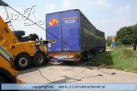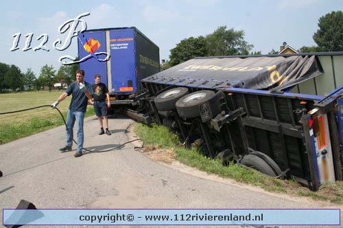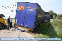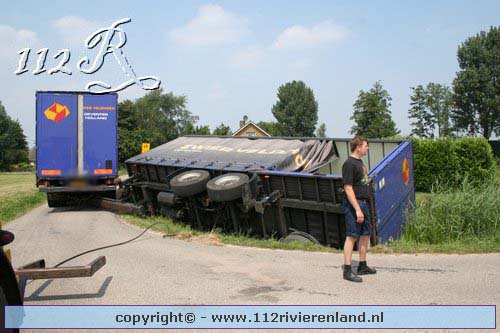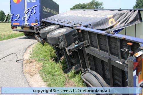 Neerijnen - Vrachtauto met oplegger gekanteld