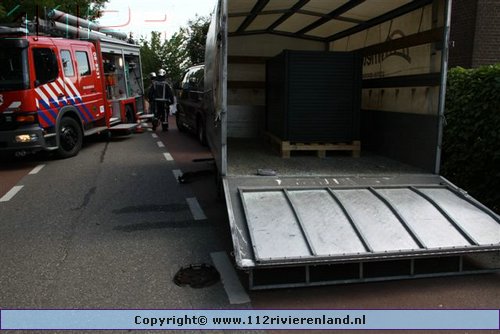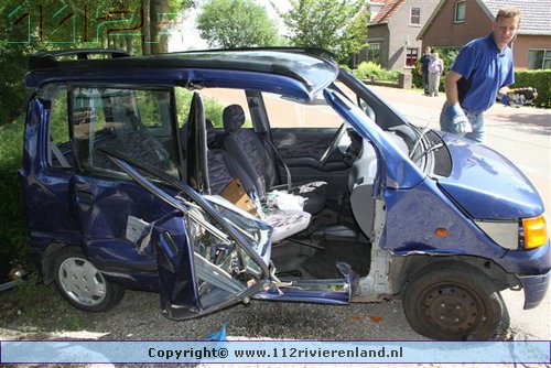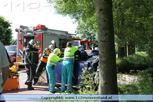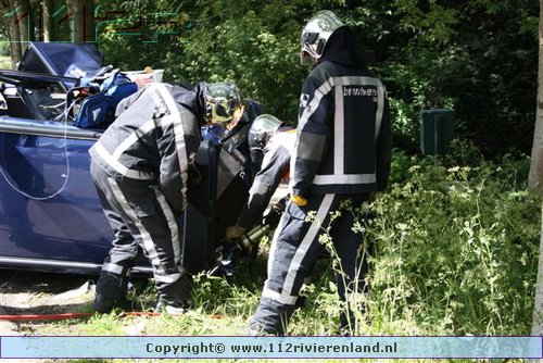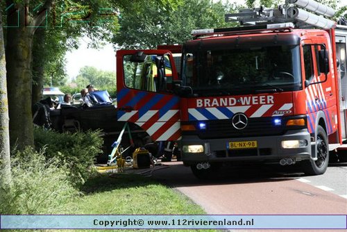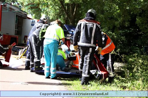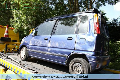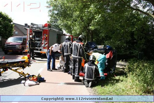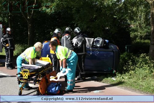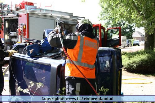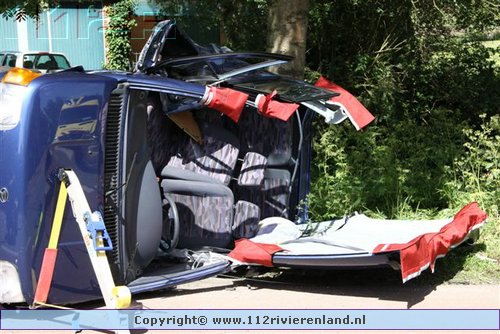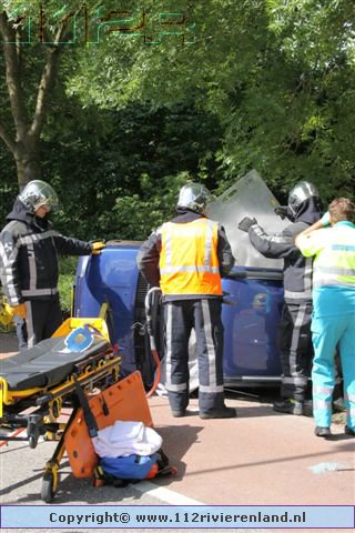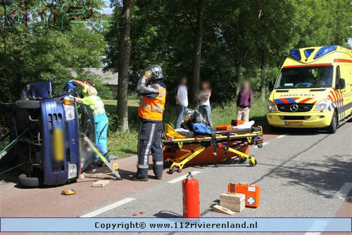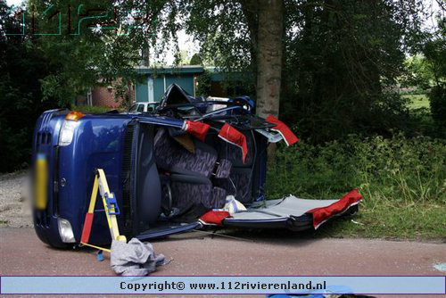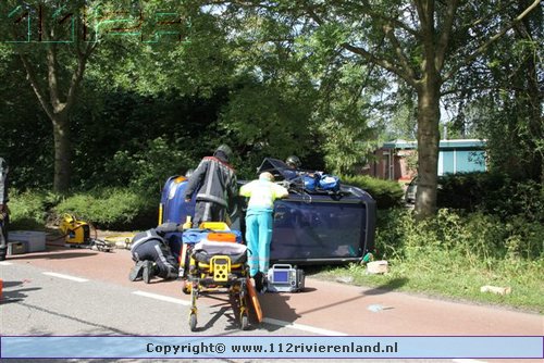 Tiel - Auto op zijn kant Lingeweg Tiel