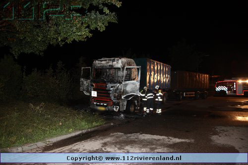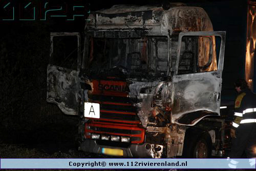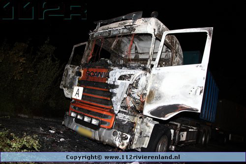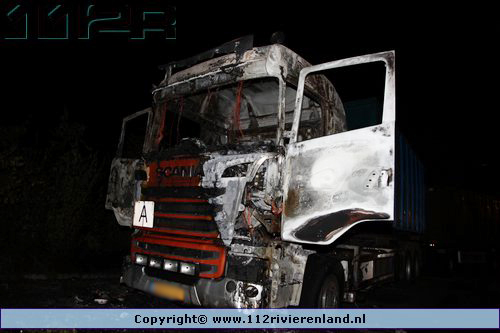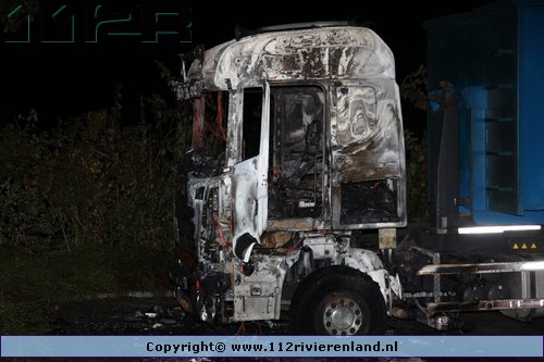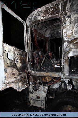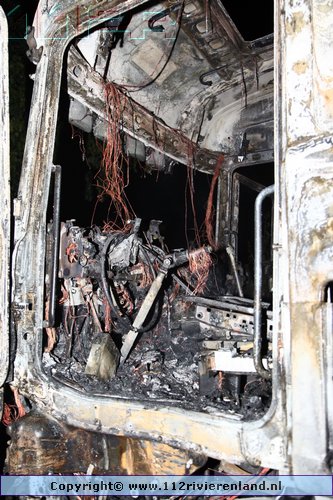 Kesteren - Vrachtwagen geheel uitgebrand Panhuizerstraat