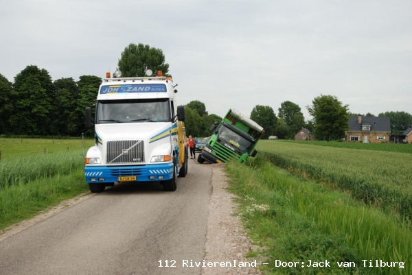 Neerijnen - Vuilniswagen in de sloot 1e Tieflaarsestraat