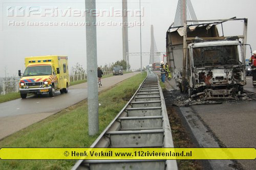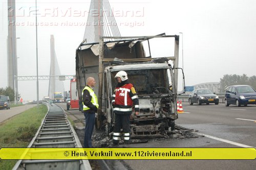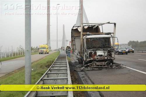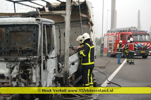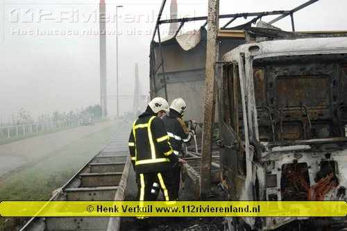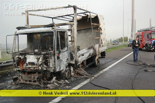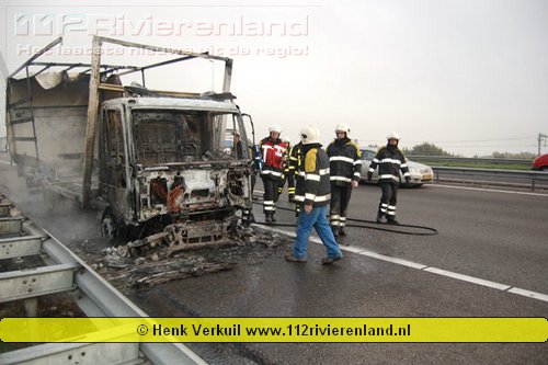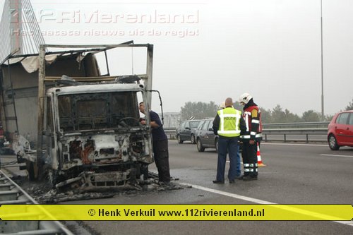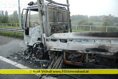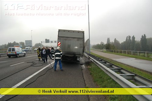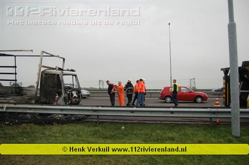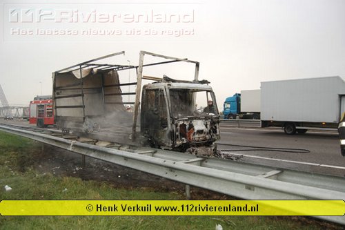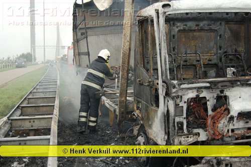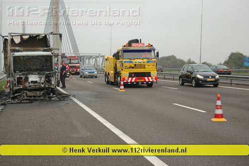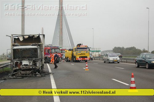 Zaltbommel - Vrachtwagen in brand op de A2