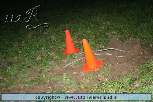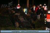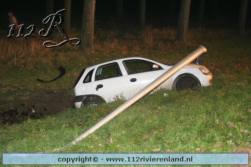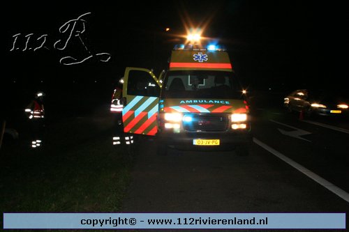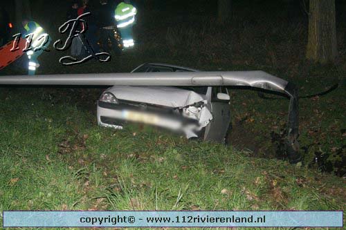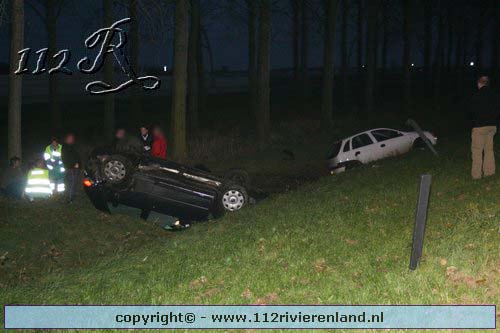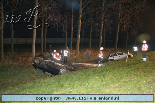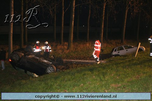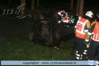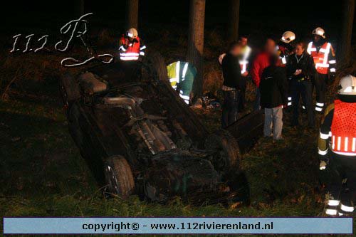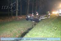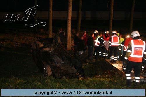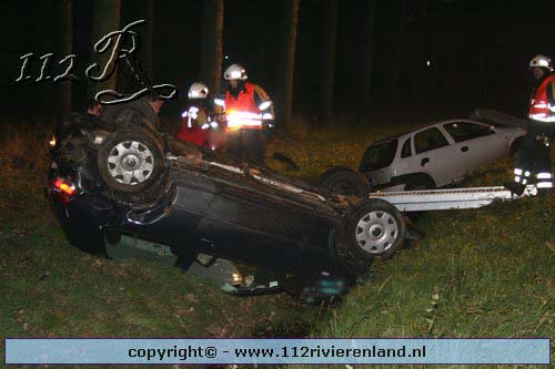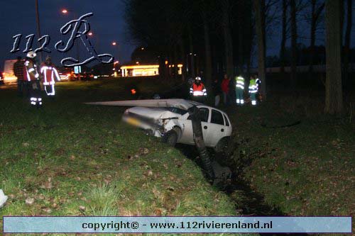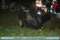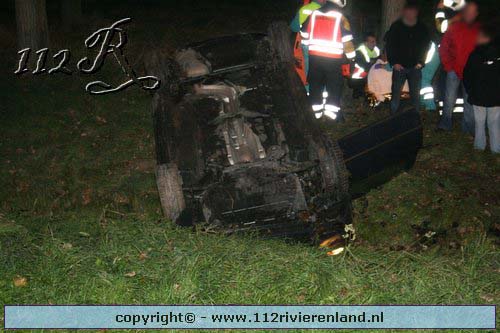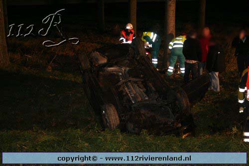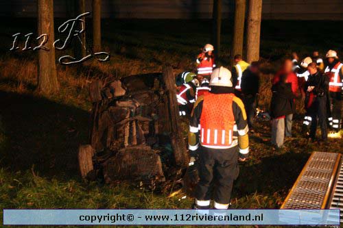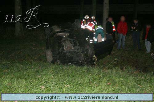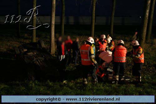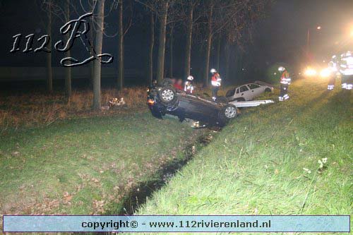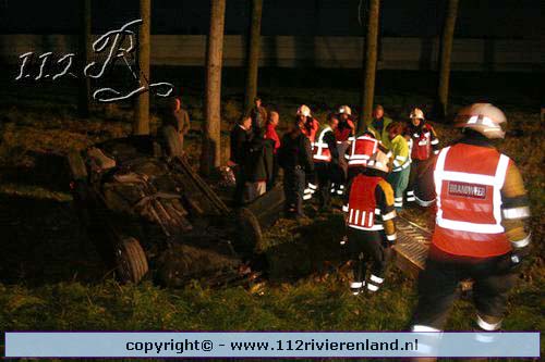 Opheusden A15 - Auto op de kop auto tegen lantaarnpaal