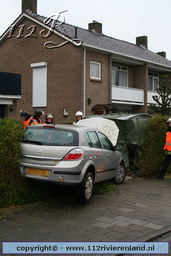 Tiel - Auto in de tuin Scheeringlaan