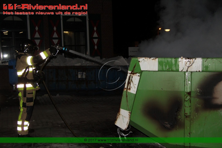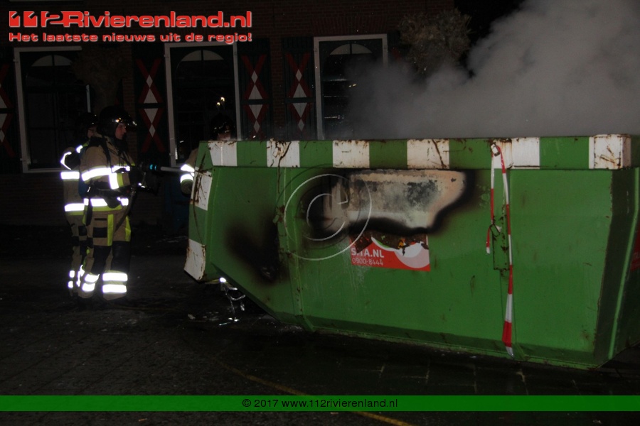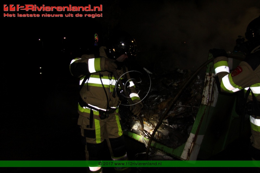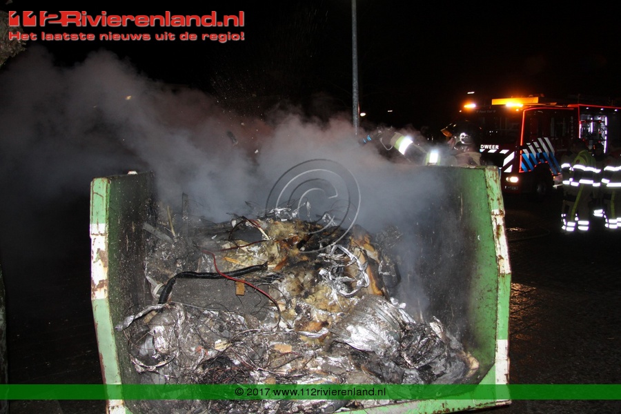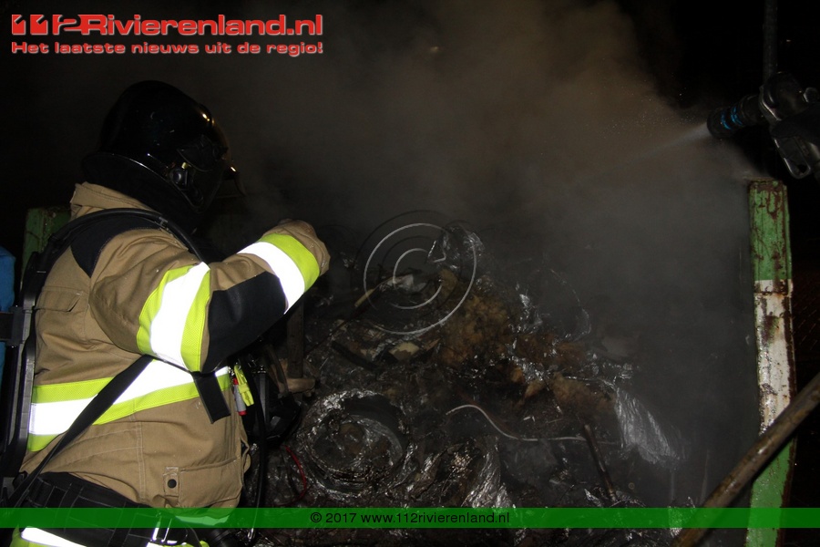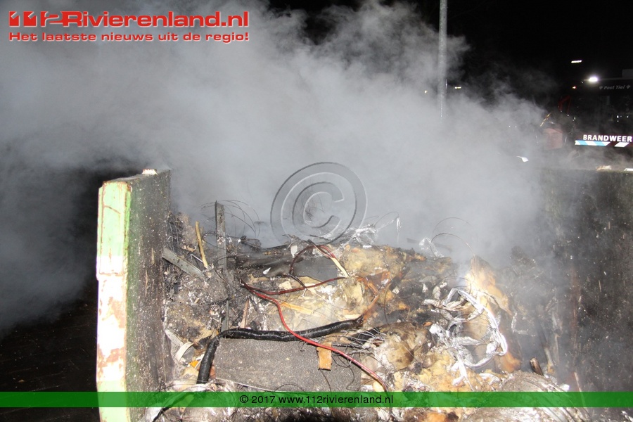 Tiel - Bouwcontainer in lichterlaaie Haagwinde