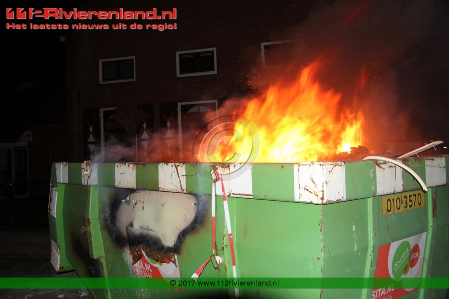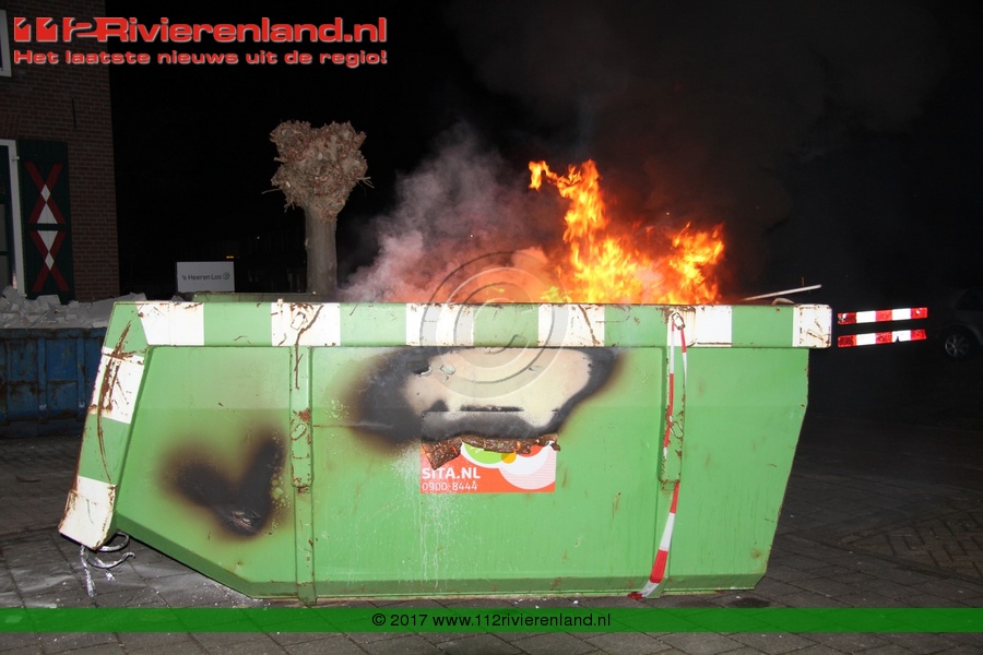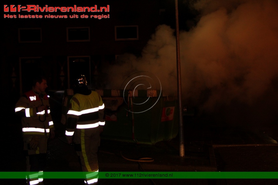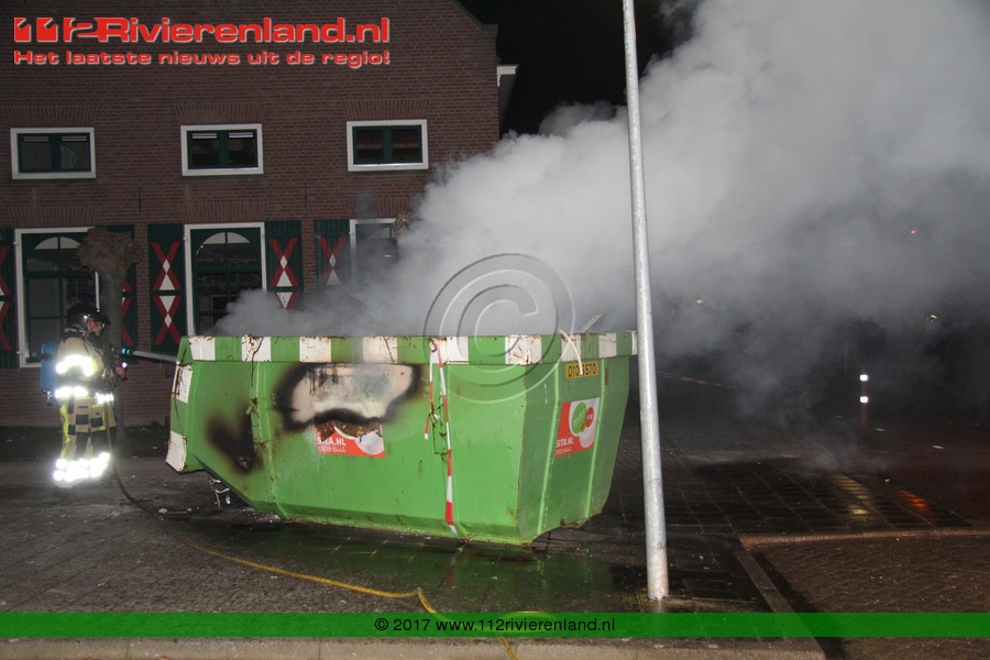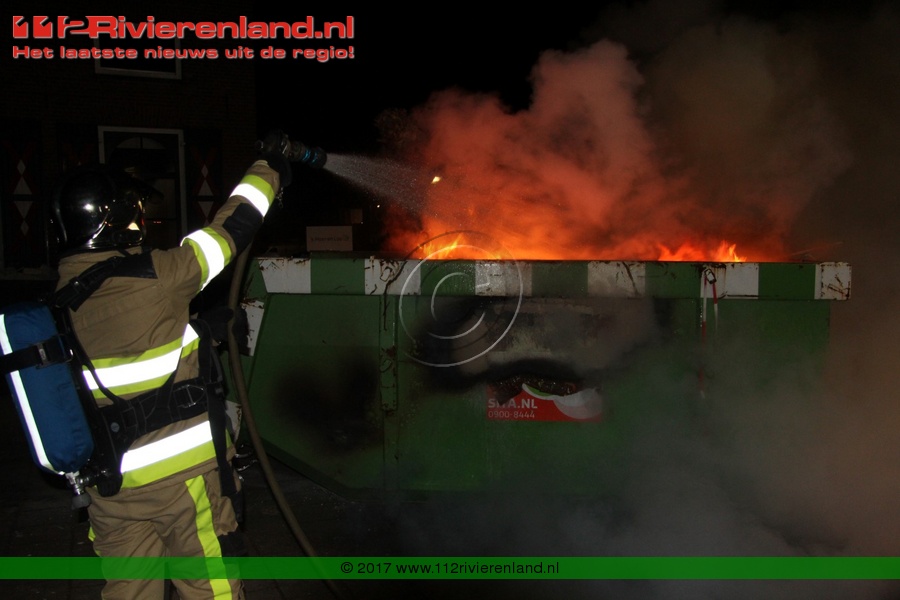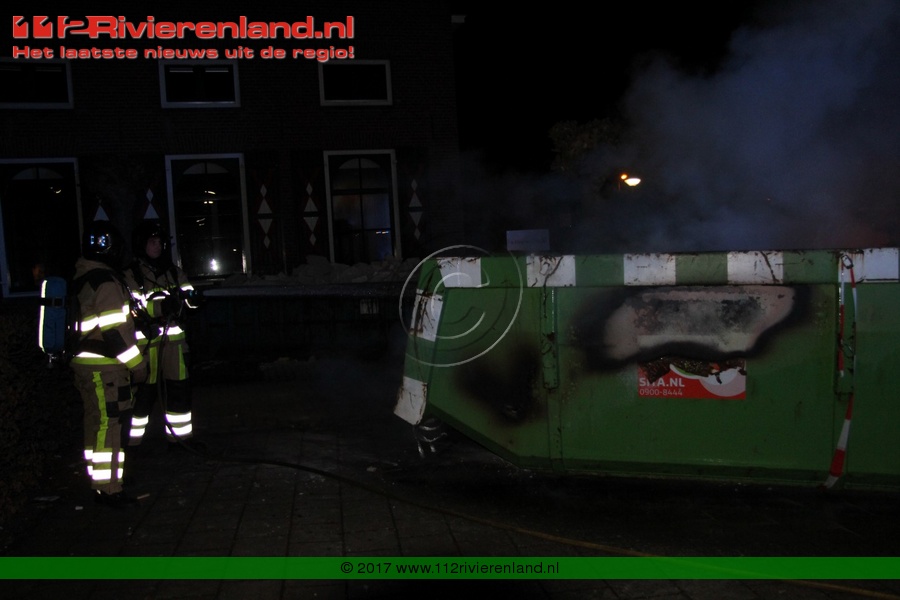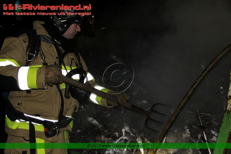 Tiel - Bouwcontainer in lichterlaaie Haagwinde