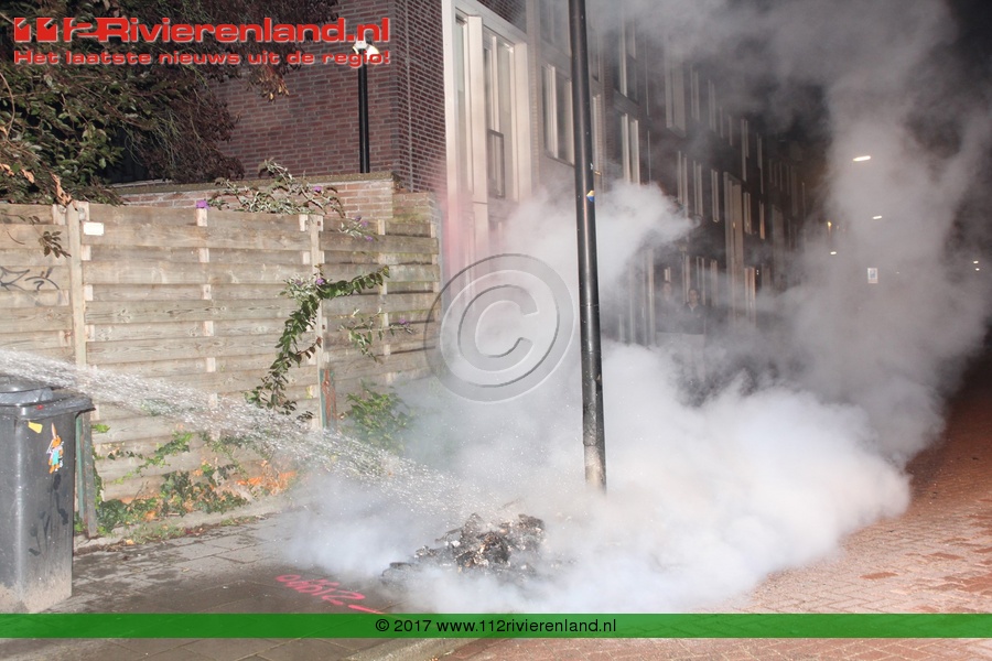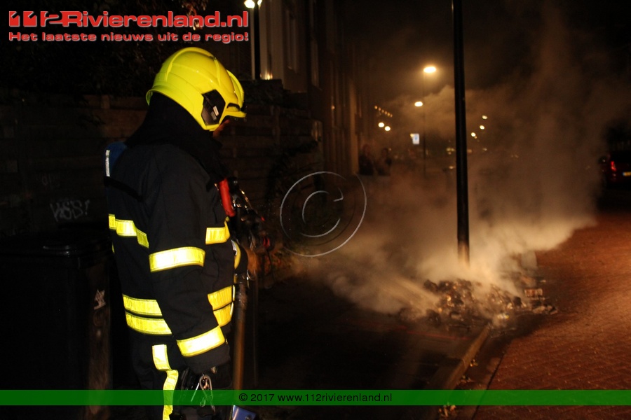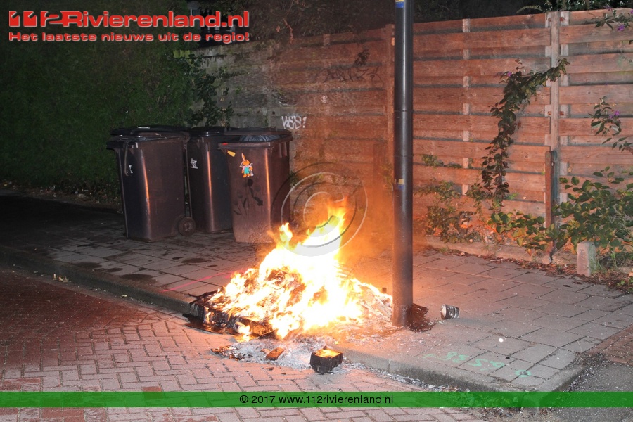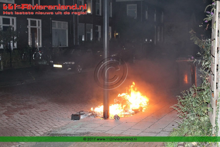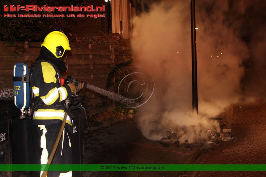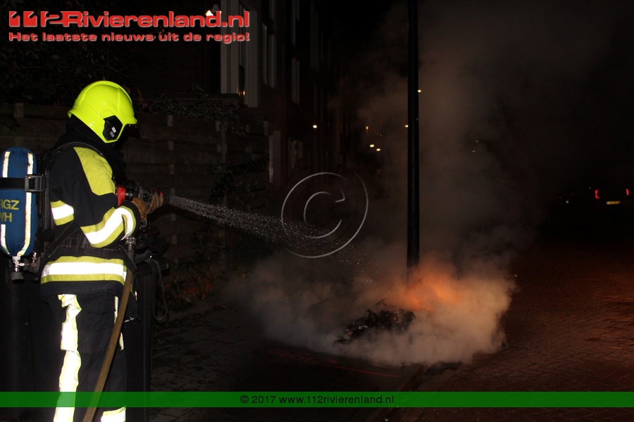 Tiel - Afvalcontainers in brand tegen lantaarnpaal Grotebrugse Grintweg