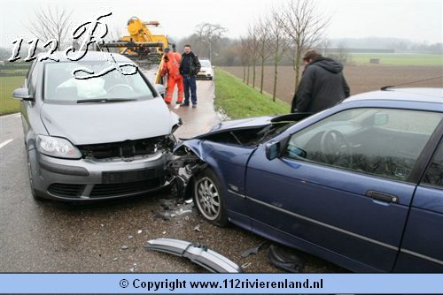 Ophemert - Twee auto`s tegen elkaar Waalbandijk
