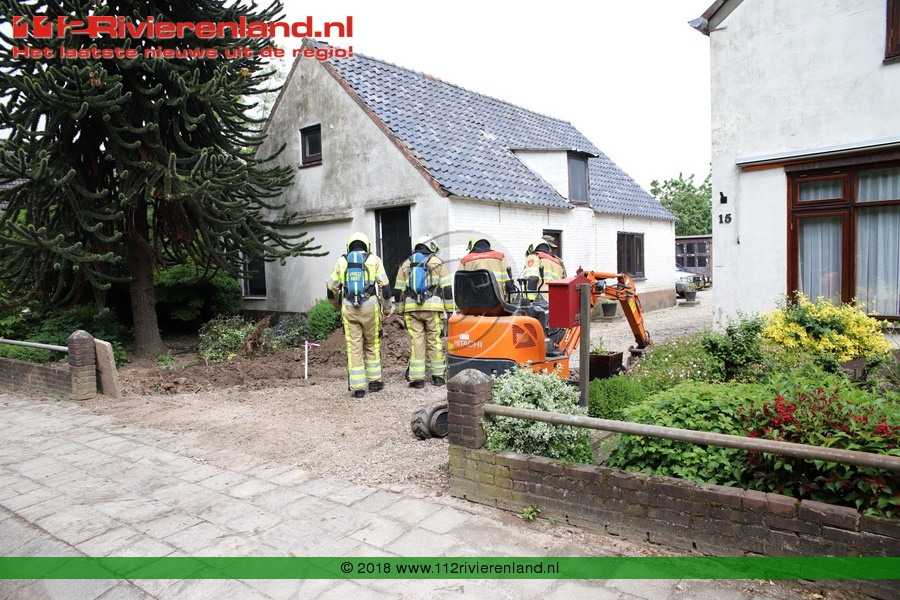 Tiel - Gasleiding geraakt, tijdens graafwerkzaamheden