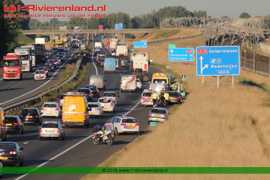Tiel - Ongeval A15 tussen Tiel-West en Wadenoijen