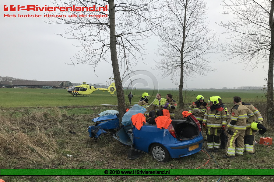 Deil - Auto belandt tegen boom verbindingsweg A15 naar de A2