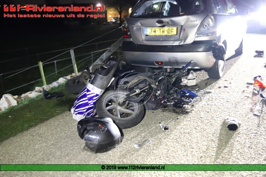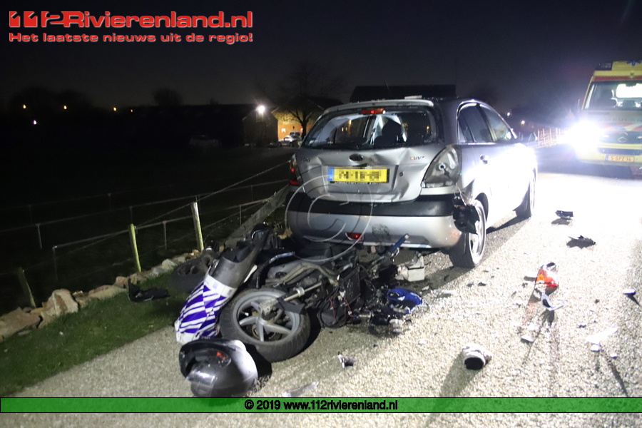 Tiel - Scooterrijder botst tegen geparkeerde auto