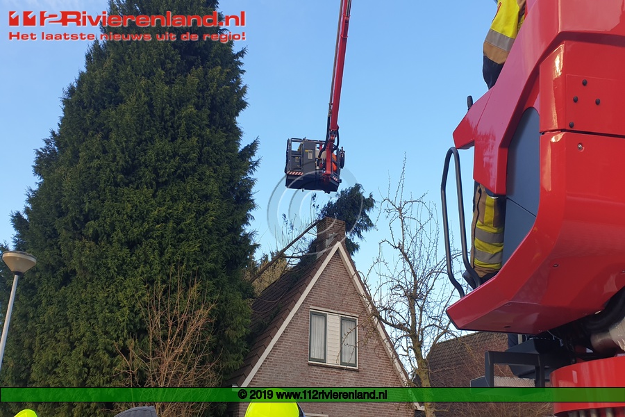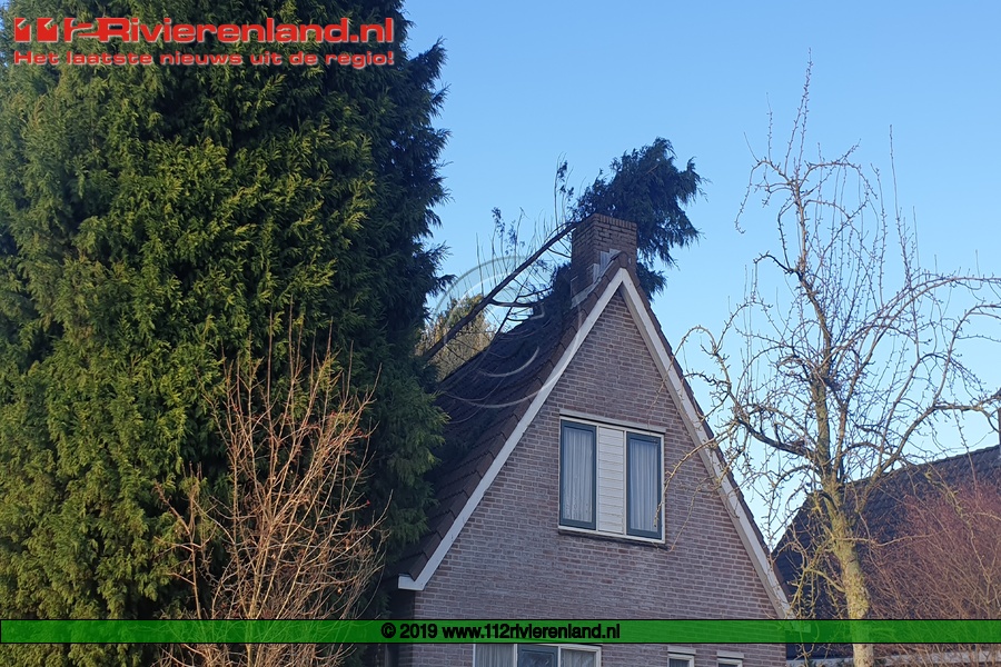 Tiel - Stuk van boom valt op dak woning